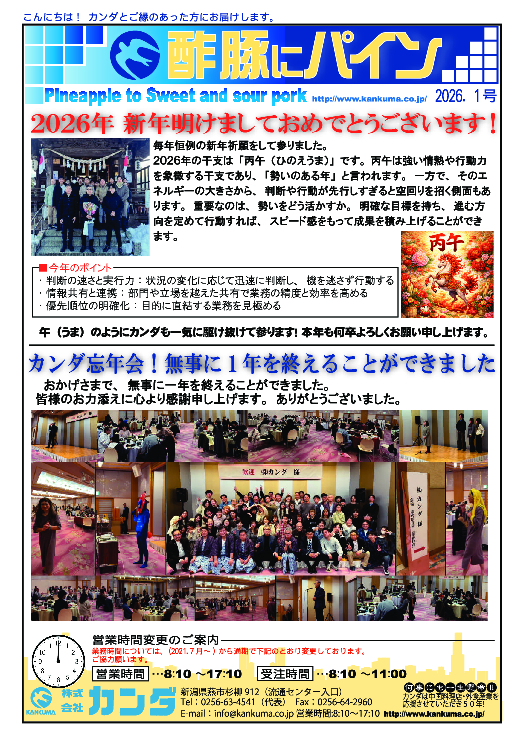 月1回発行の酢豚に「パイン」では、紙面を通じ、いろいろな情報を始め、お客様、仕入先の方々とコミュニケーションを図って行きたいと思っております。